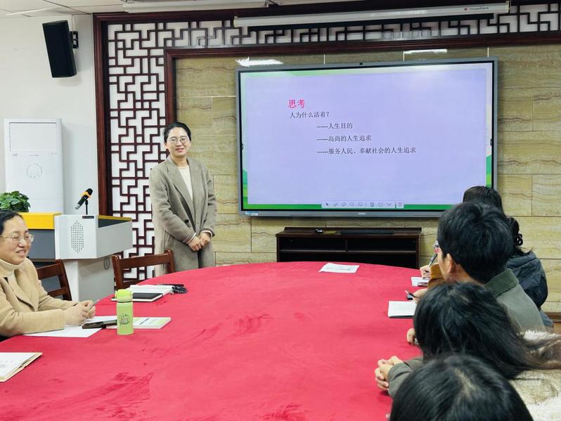 随后,高榕蔚博士以《积极进取的人生态度》为专题进行主讲,同样带来了25 分钟干货满满的分享。她在章节内容解读上进行完善延伸,重点聚焦本部分教学重难点的突破思路,结合教研室数字赋能教学的改革要求,提出了微课设计、线上互动环节等数字化教学资源应用设想;同时结合日常课堂教学中的学生反馈,给出差异化教学建议,补充了多元的教学案例和知识点切入角度,与明月博士的分享各有侧重、互为补充,让全体教师对《正确的人生观》整节内容有了更系统、全面的把握。