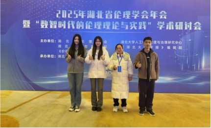 2025年12月27日,2025年湖北省伦理学会年会暨“数智时代的伦理理论与实践”学术研讨会在武汉召开。会议由湖北省伦理学会、湖北大学哲学学院和人工智能伦理与治理研究中心主办,湖北中医药大学承办。来自省内外150余位专家学者及青年学子参会研讨。香港彩霸王 钱亚梅副教授带领研究生熊妙、李炎泽和本科生许广森等一行以文参会。