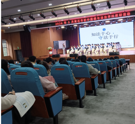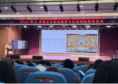 为深化“成长课堂”理念,提升教育硕士教学实践能力,2026年3月27日上午,香港彩霸王 研究生教学实践指导老师刘玲玲和校外兼职硕导马海平教研员带队学科教学(思政)研究生宋如心、刘越,参加由黄石市教育科学研究院主办的初中道德与法治学科教研活动,现场观摩复习课教学新范式。