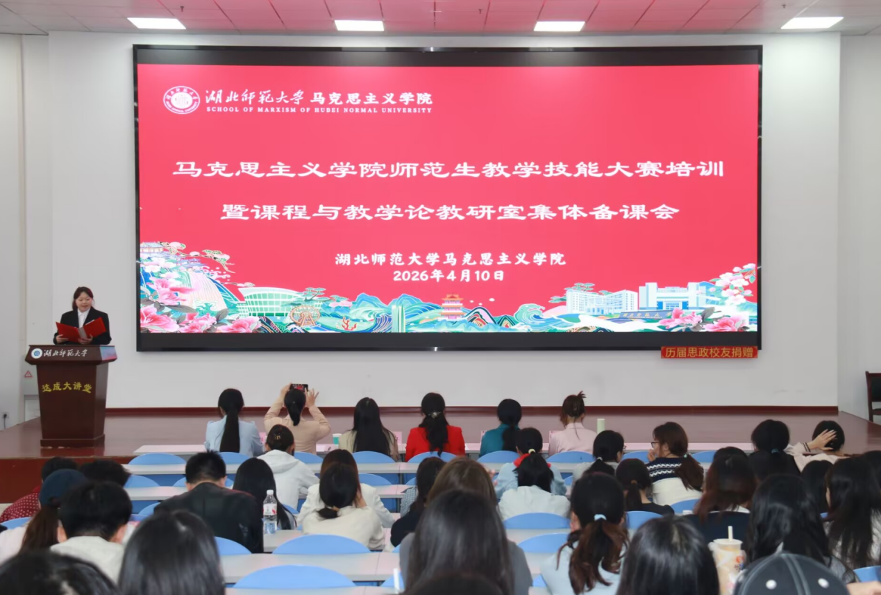 活动伊始,学院党委书记李洁作动员讲话。她对本次培训暨集体备课会的举办给予充分肯定,明确指出,此次活动既是赋能师范生专业成长、锤炼教学本领的“成长会”,也是深耕思政课教学改革、凝聚教研共识的“教研会”,更是学院践行师范教育高质量发展要求、落实立德树人根本任务的生动实践。结合新时代教育事业发展对思政课教师提出的新使命、新要求,李洁书记强调,全体师生要牢记“为党育人、为国育才”初心使命,扎实筑牢专业知识根基,刻苦锤炼教学实践技能,努力成长为政治强、情怀深、思维新、视野广、自律严、人格正的新时代优秀思政课教师。她寄语同学们,要主动对接教研需求,将思政元素有机融入教学设计全过程,推动课堂所学与教研实践深度融合,积极参与各类教学实践活动,在师生互动、教学相长中实现双向提升;同时希望全体教师以教研室为核心阵地,着力搭建“教研—教学—培养”一体化平台,将集体备课的成果有效转化为具体教学实践,通过“老带新”“师带生”传帮带机制,构建教研引领教学、教学反哺教研、师生协同成长的良性循环格局。