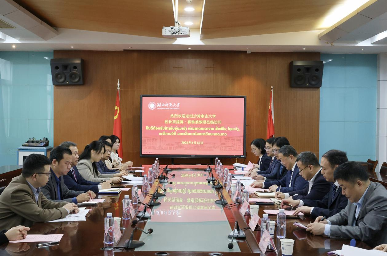 西提赛·赛雅翁对我校的热情接待表示感谢,并介绍了沙湾拿吉大学的办学定位、学科特色及国际合作进展。他表示,沙湾拿吉大学愿与湖北师范大学建立长期稳定的合作平台,特别是在青少年价值观教育、政治学等领域深化教育资源共享与学术交流,助力中老两国高等教育协同发展。
